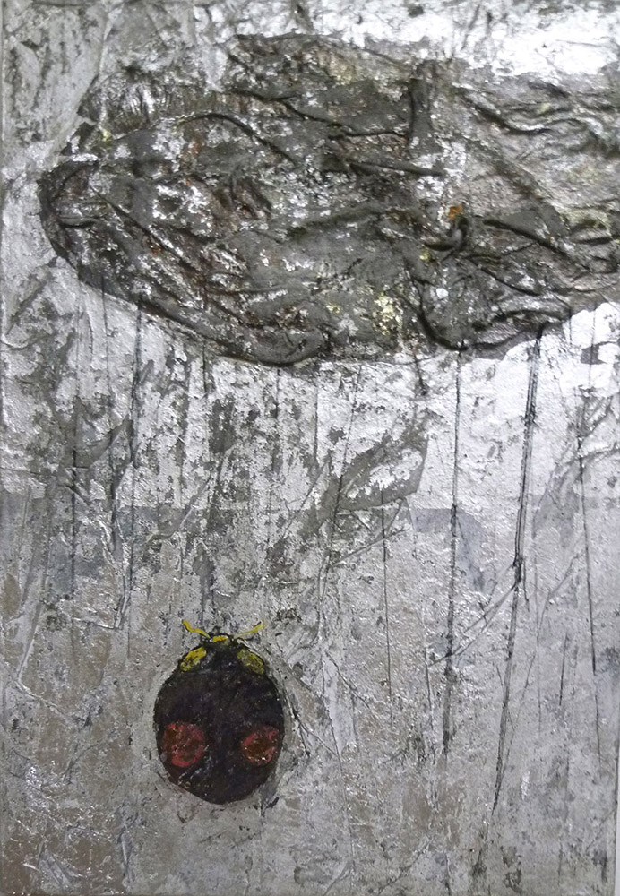 私の作品は、根本的に頭の中のイメージで作られている。日常生活や生まれ育った記憶が自然に画像として現れる・・。無意識に自分の中の内在しているものと、今生きているものとが感情を通して画面上に表現されていると思っている。いつのことから、気づくとイメージに塊が出てくることが多い。たぶん、自分そのもののような気がするが、その塊を探り展開して行くことで何かの答えを出そうと考える・・