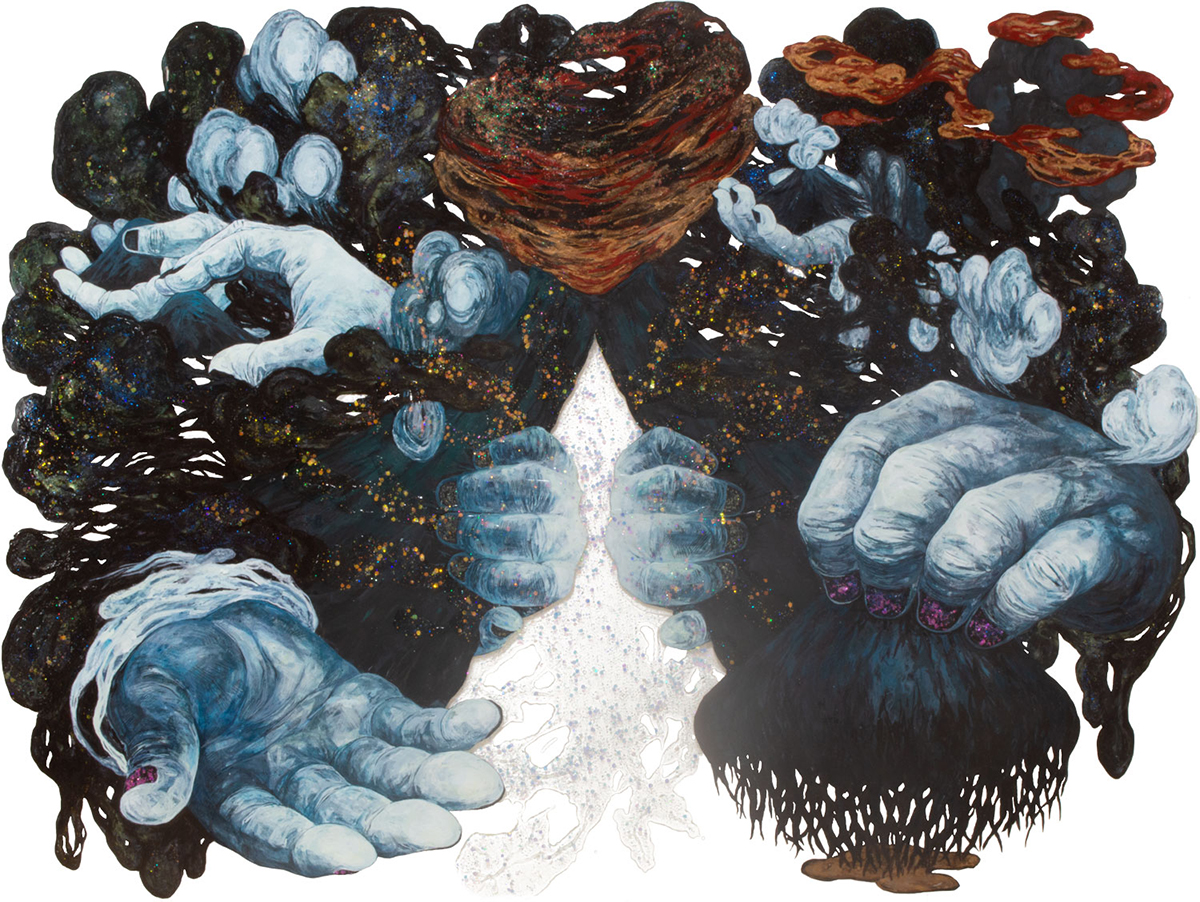 山や自然が持つ「理不尽さ」や「暴力性」、あるいは「災害」といったものをテーマとした平面作品を制作しています。